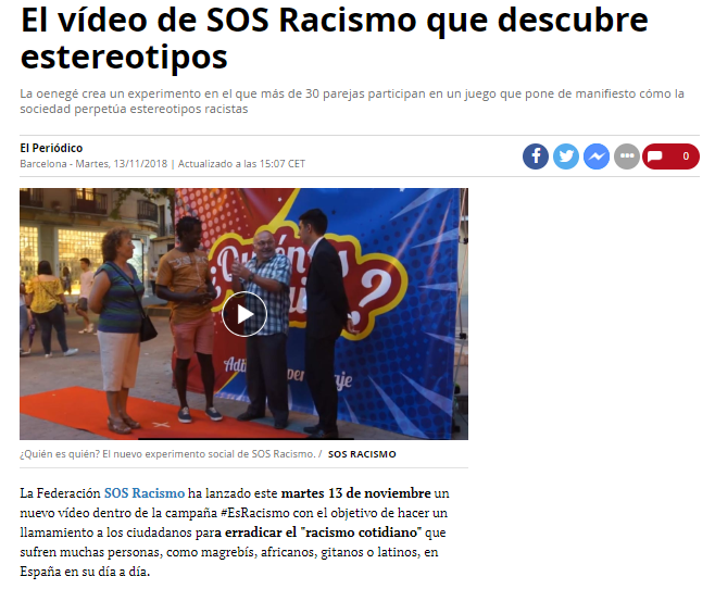La Federación SOS Racismo nos contacta porque tiene como objetivo sensibilizar sobre la racismo latente en nuestro país y posicionarse como referencia estatal en el tema. Para ello nos pide una campaña de street marketing que tenga repercusión online. Pero, ¿cómo hacemos sentir a la gente que el racismo es palpable en nuestra sociedad?